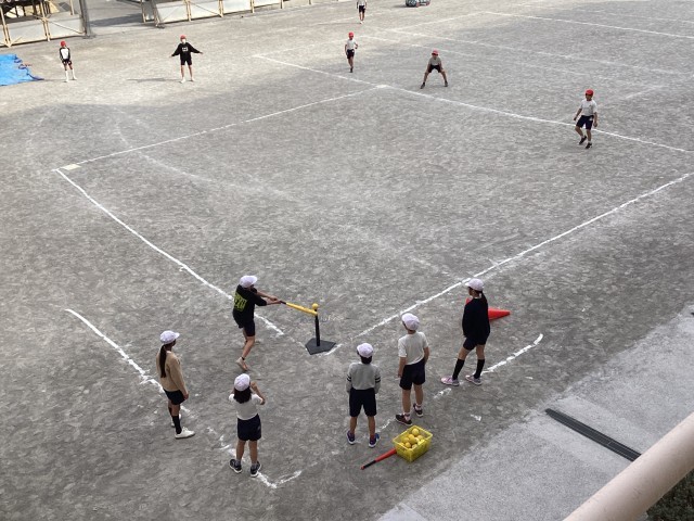 子ども達は、バットの握り方やスイングの仕方、守備位置の工夫などを確かめながら、チームで声を掛け合い、意欲的にゲームを楽しんでいました。