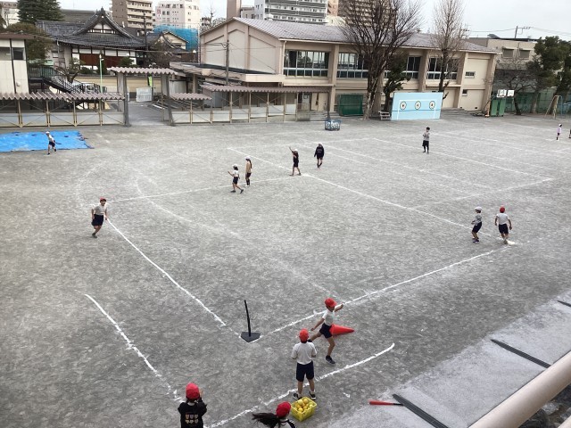 2月24日(月)6校時、5年生が体育の学習でティーボールに取り組みました。