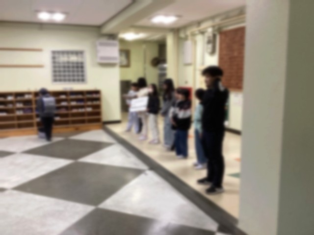 2月25日(火)朝、4年生が昇降口で 「元気いっぱいあいさつプロジェクト」 を行いました。