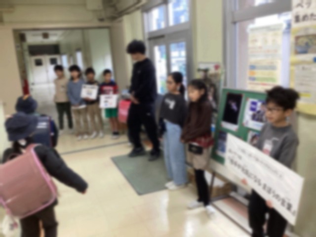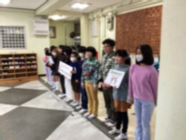 2月26日(木)朝、4年生による「元気いっぱいあいさつプロジェクト」が行われました。