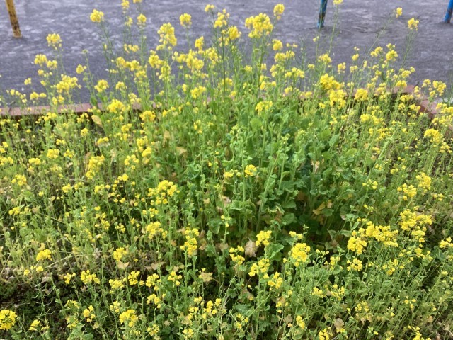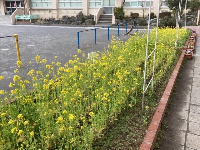 にしこの校庭に、今年も一面に菜の花が咲きそろいました。