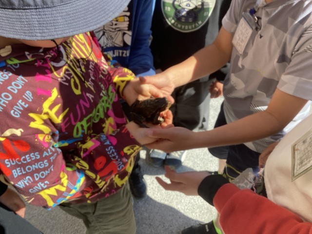 校長先生も「よく見つけたね」と声をかけ、子ども達はさらに満面の笑み。周りにいた子ども達も興味津々で集まり、自然と小さな観察会のような雰囲気になりました。