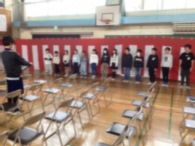 3月19日(木)の中休みに、体育館で各学年による修了証授与の練習を行いました。
