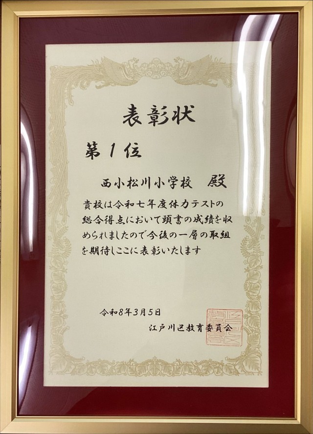 一つ目は、体力テストの総合得点が江戸川区内で第1位となったことです。