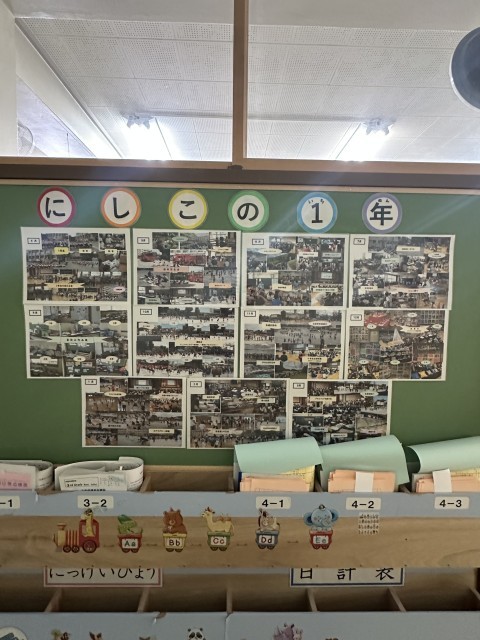 昨年度のにしこの1年間の様子を、職員室前廊下に掲示しています。