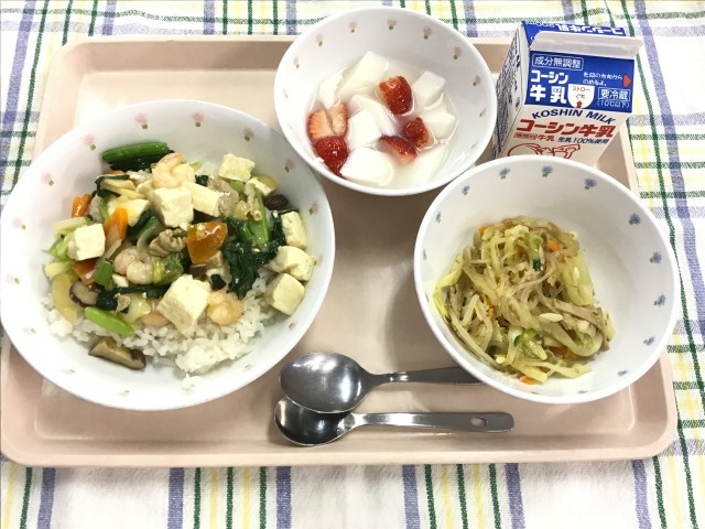豆腐のエビのうま煮丼