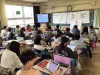 今日は今年はじめての兄弟学年班給食です。お兄さん、お姉さんと一緒にお話をしながら、食べています。
