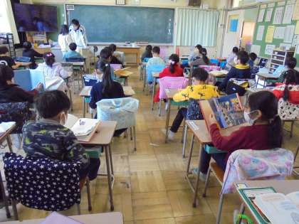 中央図書館から団体貸出して頂いた絵本が教室にたくさん届きました。