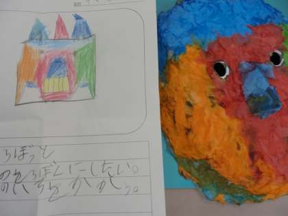 自分がなりたいもののお面を作ります。お面をかぶれば、自分がなりたいものに大変身!!