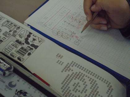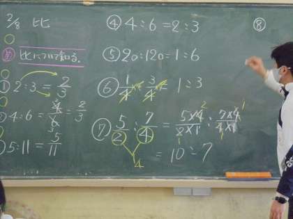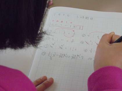「かけ算」「公倍数」「約分」等の学習を活用して、理解を深めていました。