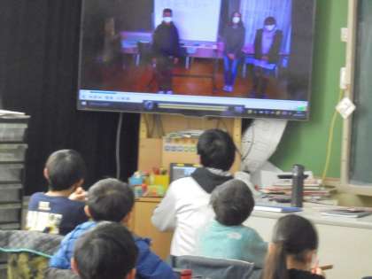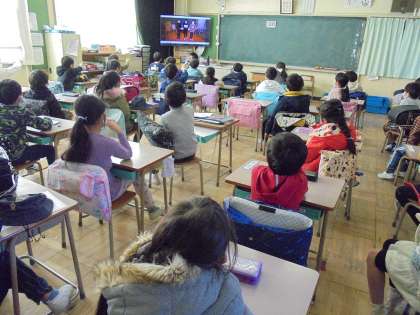 集会委員の5年生、6年生が、事前にビデオ撮影した問題を、朝の活動の時間に全校で一斉に楽しみました。