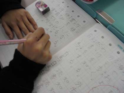 口を閉じ、お手本を見ながら一画一画丁寧に書くことで、正しい漢字を覚えています。