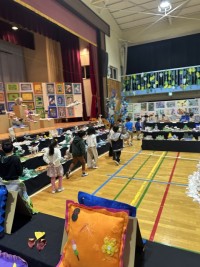 今、体育の学習で体育館では「マット運動」、校庭では「陸上競技のハードル走」に取り組んでいます。今日はマット運動の様子です。