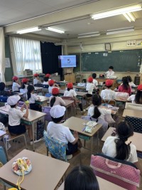 山道を歩いて、山頂に着きました。見張らしもよく、山びこも返ってきました。