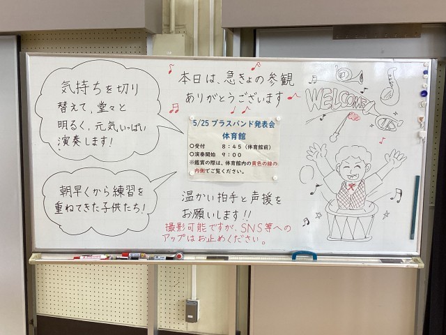 5月25日(日)、体育館でブラスバンドによる臨時発表会がありました。