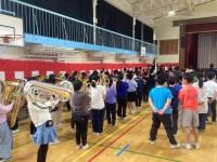 ブラスバンド部の演奏とにしこちゃんの応援で締めくくった修了式
