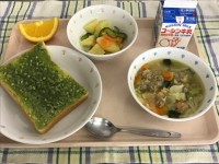 【今日の献立】小松菜クッキートースト ミートボールと野菜のスープ きゅうりと...