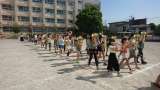 27日(日)の中央地域祭りに向けた学年練習をしました。 立ち方、楽器や用具の構...