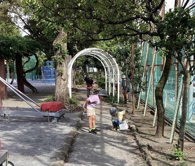 普段何気なく歩いている公園や道、学校内で沢山秋の植物を見つけることができました。画用紙に貼ってアートにしたり、紐を通してアクセサリーにしたりしている児童もいました。