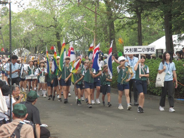 6年生が、江戸川区民祭りに、マーチングパレードで参加しました。校歌、聖者の行進、ミッキーマウスマーチの三曲をしっかりと演奏しました。開校50周年記念として新調していただいた衣装をまとい、気持ちも高まりました。参加している他の小学校やそのほかの団体のパレードも素晴らしいものでした。大変素敵な区民祭りでした。