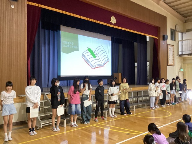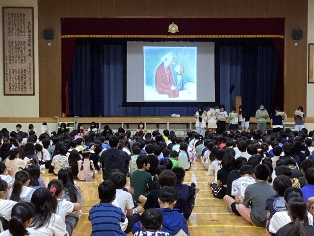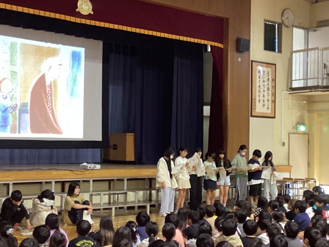 先日、図書委員会による読み聞かせ集会がありました。「おじいちゃんがおばけになったわけ」を読み聞かせしました。図書委員会の子供達は、放課後たくさん練習していました。練習の成果が発揮できていました。