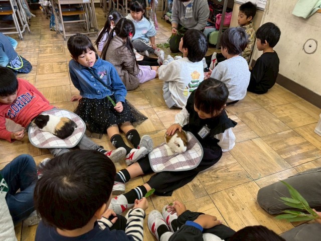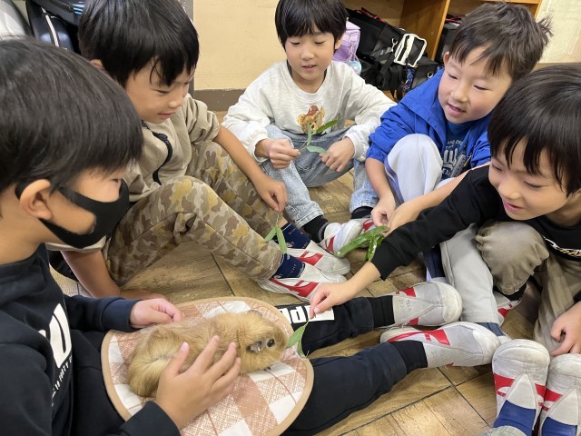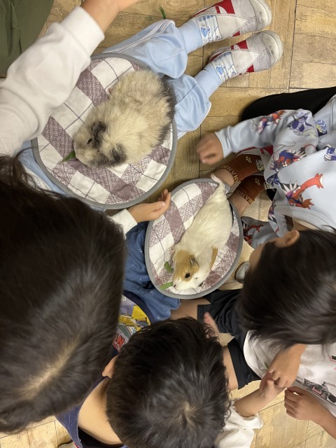 1年生はモルモット体験を行いました。
