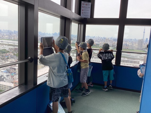 10月3日(金)の3年生の社会科見学では船堀タワーから江戸川区の有名な建物や土地の使われ方を調べました。