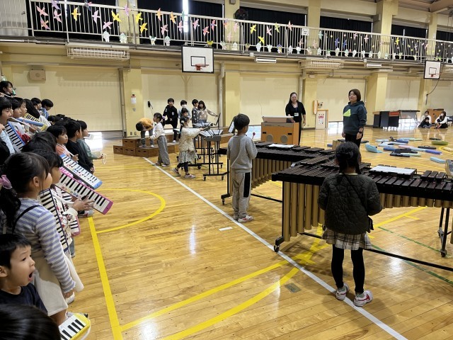 体育館で初めて演奏してみました。本番に向けて、これからも練習を頑張っていきたいと思います。