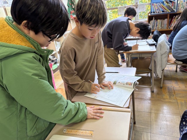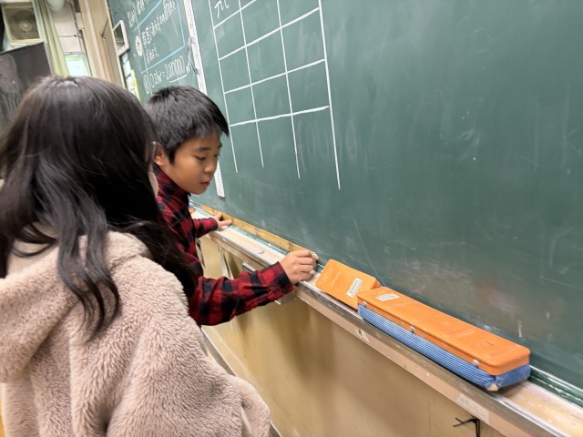 今日は、1mものさしを使って2人1組で教室内のさまざまな面積を