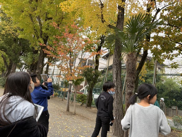 今日は、校庭にある植物の秋探しを行い、iPadで写真を撮りました。