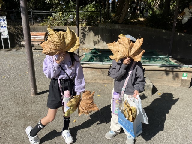 1年生は、秋を探しに、瀬戸口公園へ行ってきました。校外学習でのルールをしっかり守り、行動していました。公園には、落ち葉や木の実がたくさん落ちていました。班のみんなと行動して、たくさん見つけることができました。たくさん見つけた秋のものを来週は、作品にします。