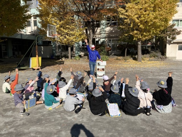 1年生は、ポニー教室を行いました。なぎさポニーランドから、3頭のポニーが来てくれました。飼育員の方からは、ポニーの特徴を教えてもらいました。また、クイズもありました。子供達は興味津々で、目をキラキラさせながら、お話を聞いていました。