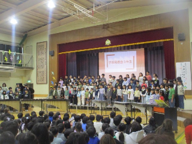 今日は開校50周年記念学習発表会の児童鑑賞日でした。1、2、3年生の発表の様子です。