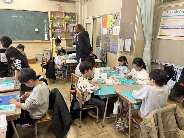 図工の学習で、ねんどを使って、自分の作りたいものを作りました。前回よりも形にこだわり、時間をかけて作成していました。