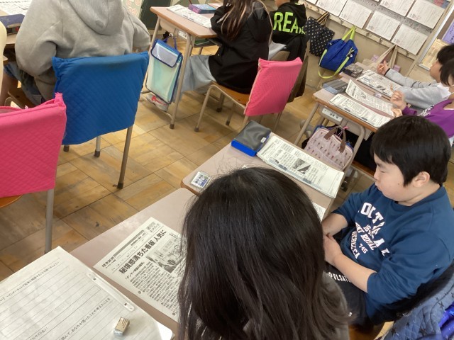 水曜日の朝学習はスギニタイムでYOMUよむワークシートに取り組んでいます。