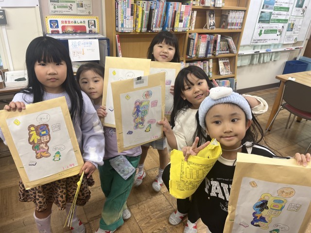 今日から、図書委員会による「本の福袋」が始まりました。たくさんの児童が図書室に来てくれました。