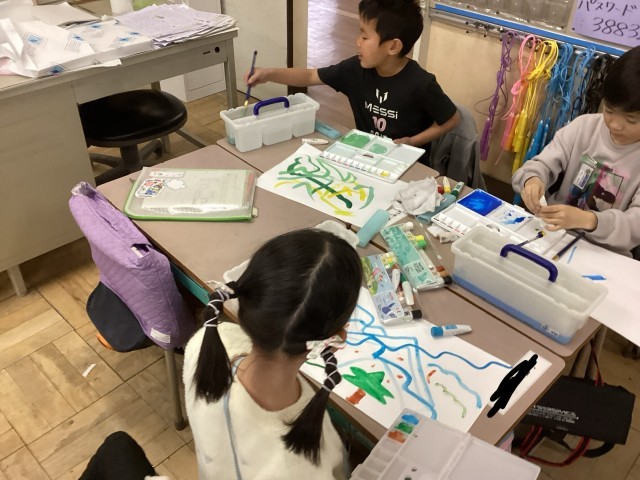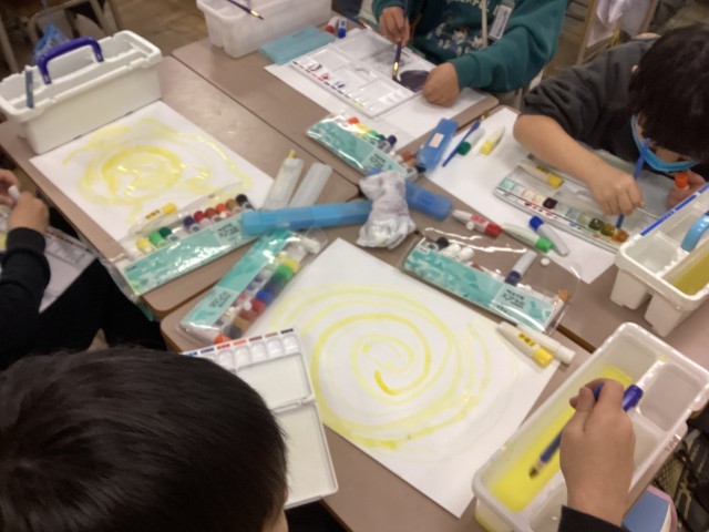 図工の学習では、絵の具を使いました。
