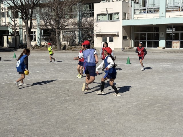 タグを取られないようにしながらボールを運ぶために、チームで声を掛け合い、作戦を考えて試合に臨みました。