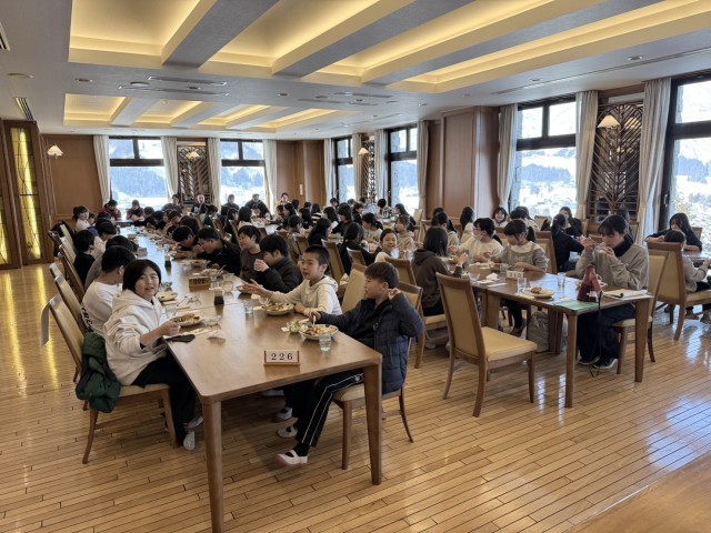 宿舎に無事到着し、午後の雪遊びに向けて昼食をいただきました!これから全力で雪遊びをします!