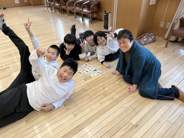 雪遊びを楽しんで、お風呂の時間です。みんなでカードゲームやジェンガをして、楽しみながらお風呂の順番を待っています!