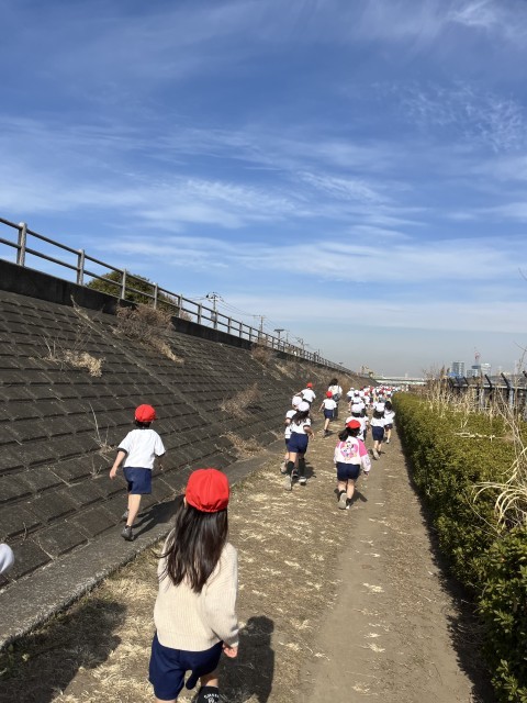 今日は、先生が先頭で走ってみました。来週は、本番と同じように走ってみます。土手のコースを走るのはとっても気持ちが良かったです。本番に向けてあと少し頑張りましょう!