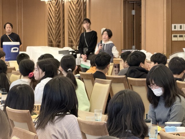 みんな朝から元気いっぱい!バイキング形式の朝食も沢山おかわりしています。宿舎の方からも「こんなにたくさん食べてくれて気持ちがいいですね」とお褒めの言葉をいただきました。いよいよ、閉校式も終わり、原田農園に向けて出発です!