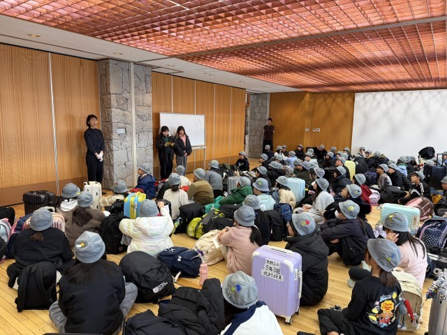 朝の会でラジオ体操をして身体を起こし、宿での最後の食事をしました。朝食後は3日間過ごした部屋の大掃除をして閉校式を行いました。
