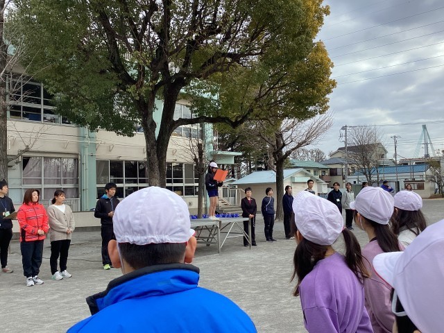 マラソン大会の開会式がありました。校長先生のお話の後に、4年江森陽菜さんが大会に向けた意気込みを児童代表の言葉として発表しました。今日は、全校児童が新中川の土手を舞台として、自分の記録と向き合い、頑張る一日です。ご声援お願いします。