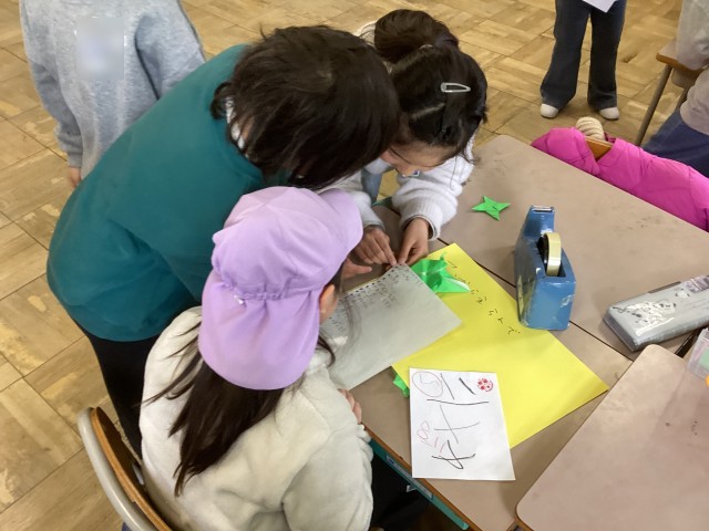 今日は、保育園の年長さんを招待して、一緒に遊んだり、勉強を教えてあげたりしました。