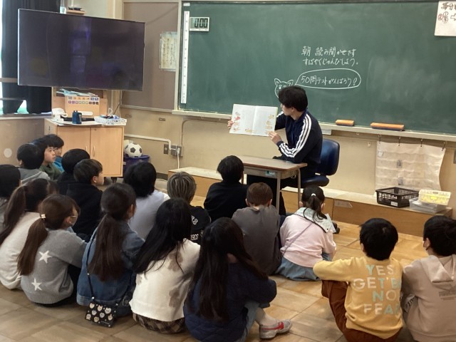 担任の先生も読み聞かせをしています。読書旬間では、いつも以上に本を読んでほしいと思います!