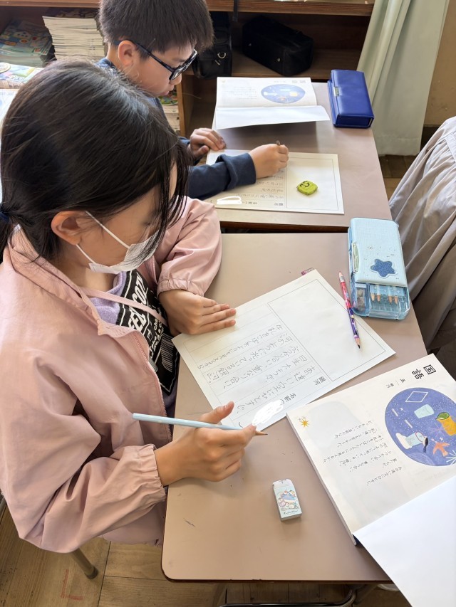 国語の学習では、教科書の題名「銀河」の詩を音読しました。