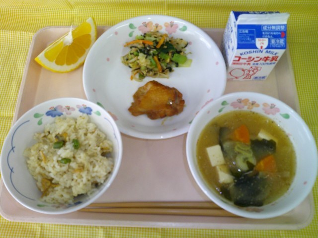 今日は、あさりと油揚げが入った、「あさりごはん」です。