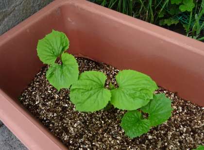 5月の動画で植えたゴーヤの種が、しっかり芽を出して成長しています。