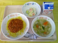 明日9月10日は、十五夜です。十五夜とは、9月に見えるきれいな満月の日をいいます。「中秋の名月」ともいわれます。十五夜には、ススキを飾ったり、栗や里芋などをお供えして、秋の収穫を感謝します。給食では、栗、カボチャ、巨峰などを使いました。汁にはお月様にみたてた黄色い白玉だんごを浮かべました。